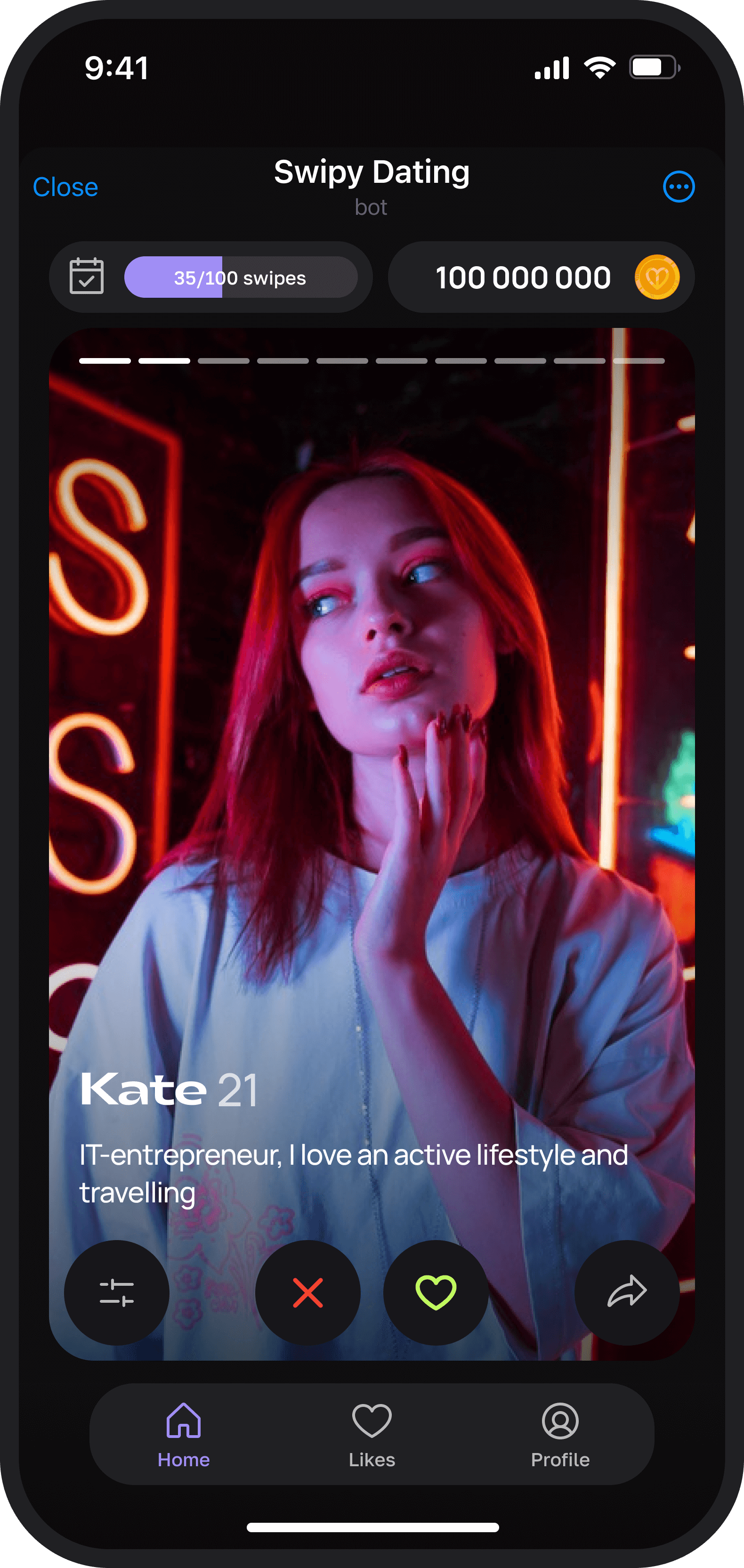 Fill out the questionnaire, and when your profile gathers 10 likes, we'll open the entrance to the app